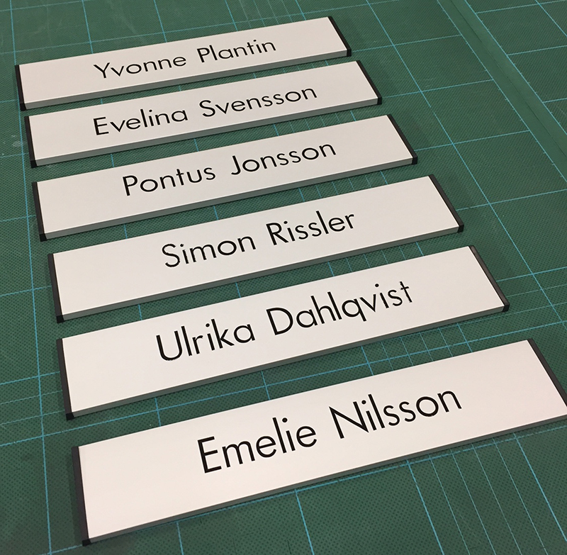 SlimSlatz kan enkelt kombineras med alla andra system i Spandex sortiment. Det betyder att även en liten skylt i inomhusmiljö kan komplettera ett stort system med identitetsskyltar för utomhusbruk.